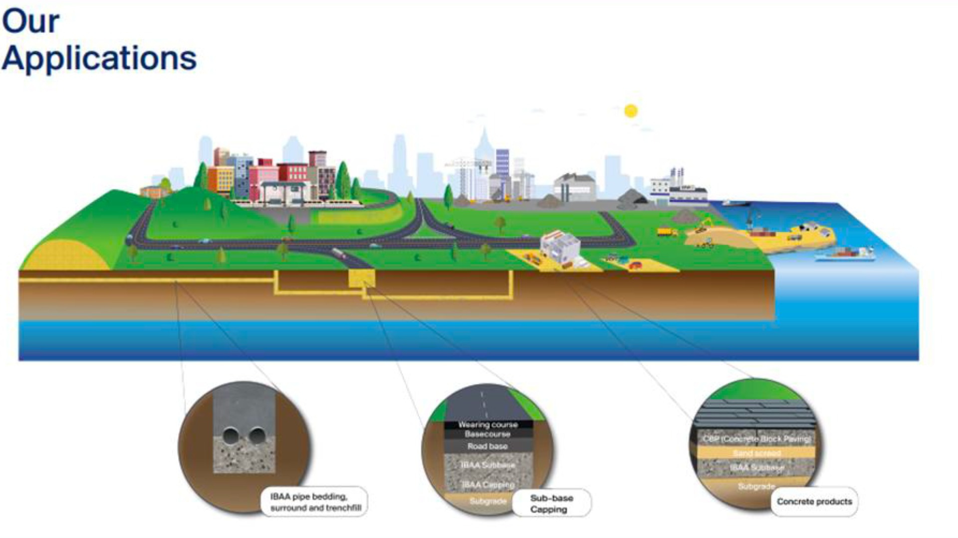Processing IBA prevents valuable resources from going to landfill, preserving them to be reused within the economy. Incinerator Bottom Ash Aggregate (IBAA) when produced